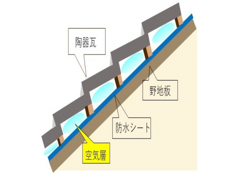 また、瓦と瓦下にある防水シートの間には空気層よばれる隙間があります。