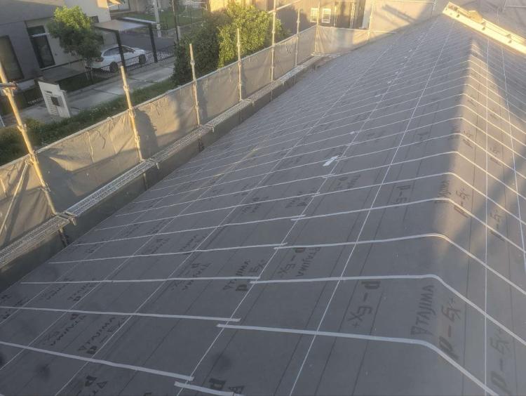 続いて、防水の要となるルーフィングを施工します。