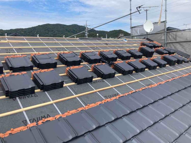 今回は、遮熱シート「サーモバリア」施工から瓦の取り付け、棟部の仕上げまでをご紹介します。